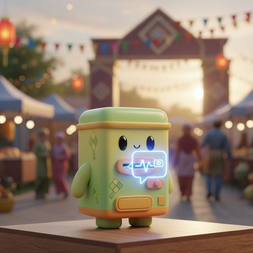 Sebuah 'vending machine' automatik yang menjana kad ucapan Aidilfitri berpantun dalam Bahasa Melayu menggunakan AI. Pengguna hanya perlu masukkan nama, nama gerai, dan foto untuk menerima kad yang unik dan estetik daripada Pak Rere.